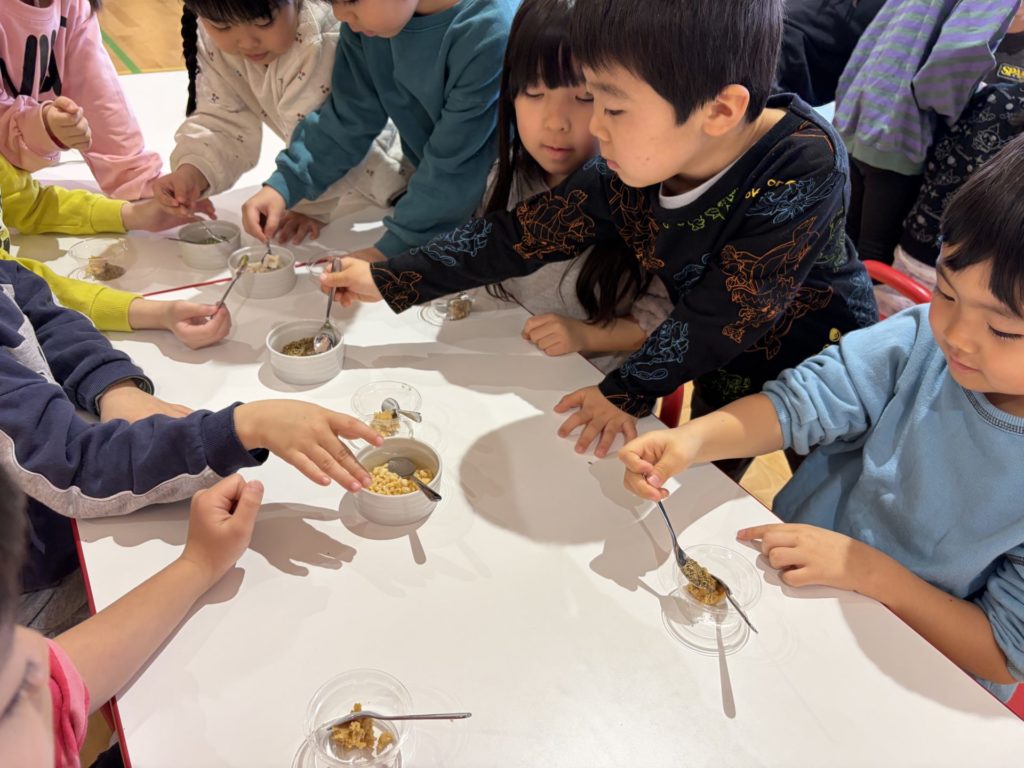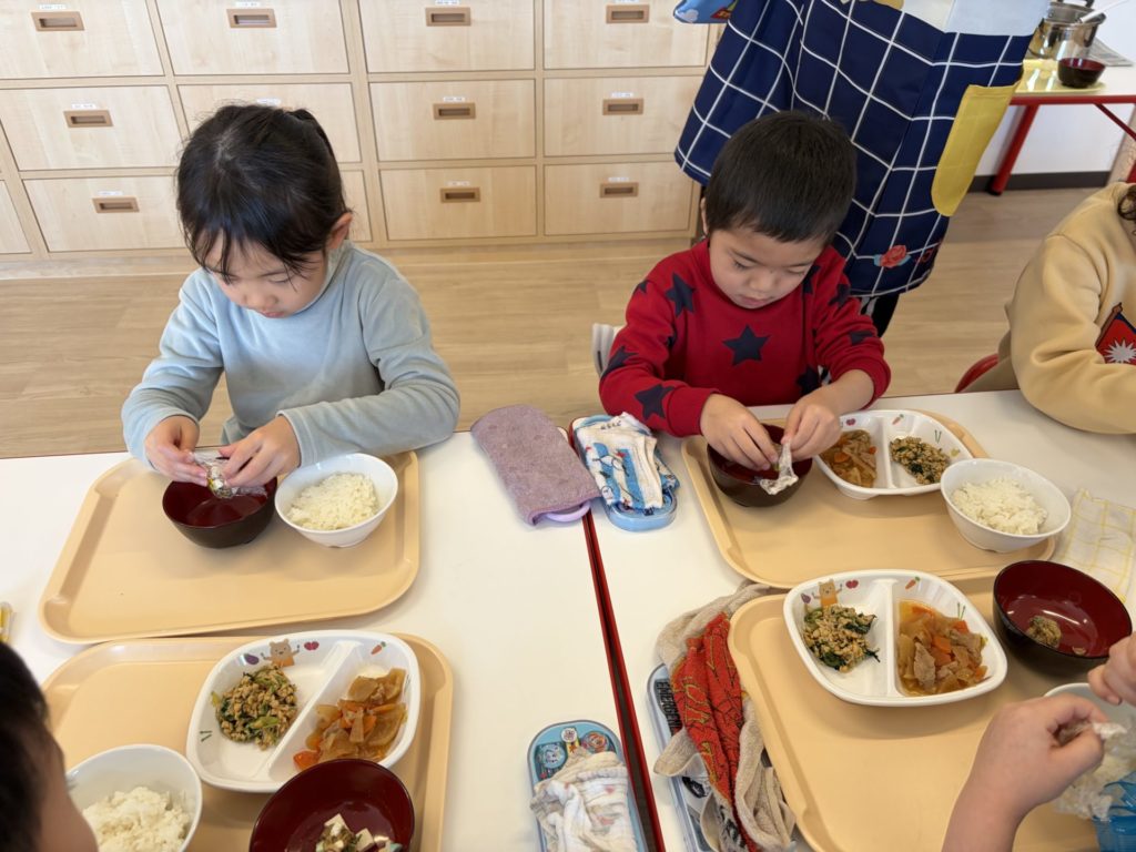 「鰹節やわらか~い」「お魚って頭も食べれるの?」と言いながら美味しそうに食べていました