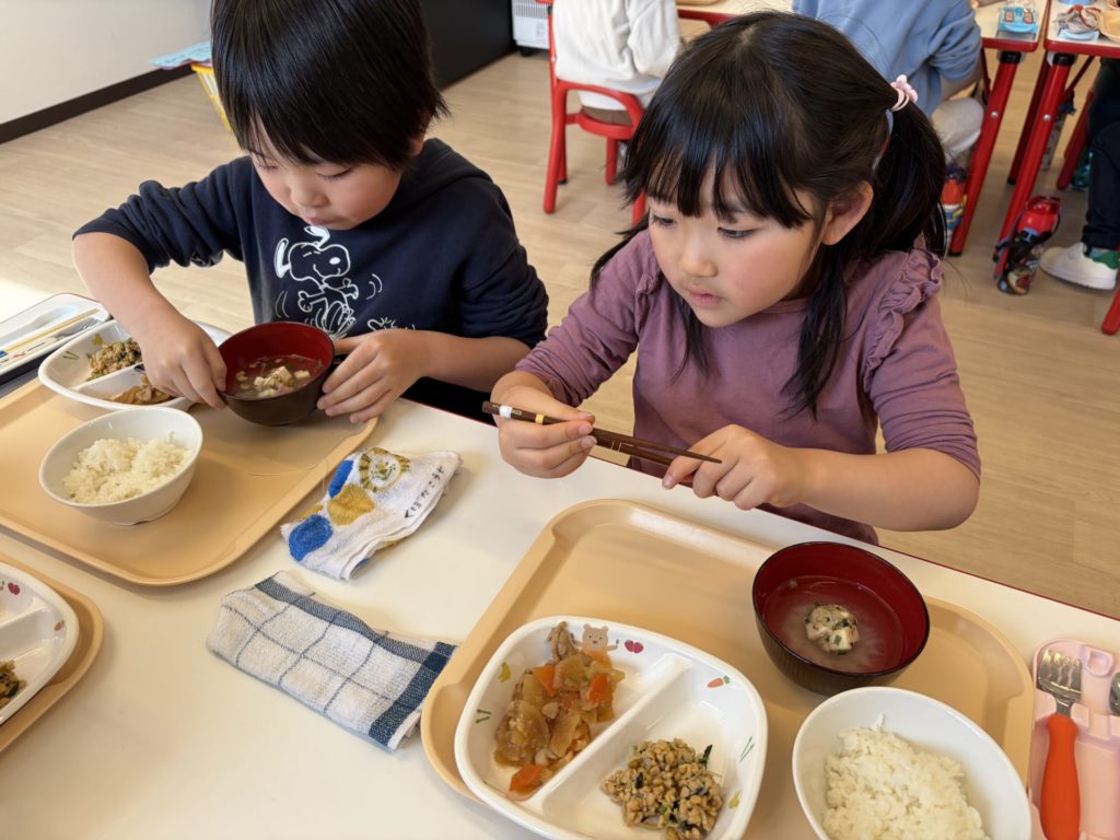 教えてもらったお箸やお椀の持ち方もちゃんも覚えていて実践していました