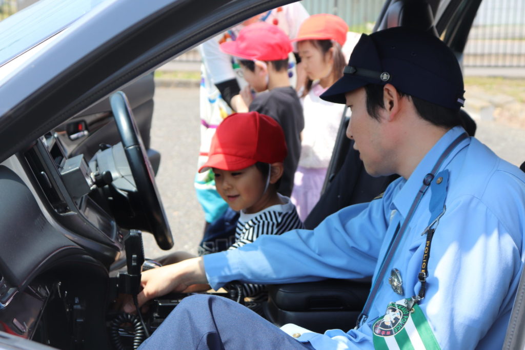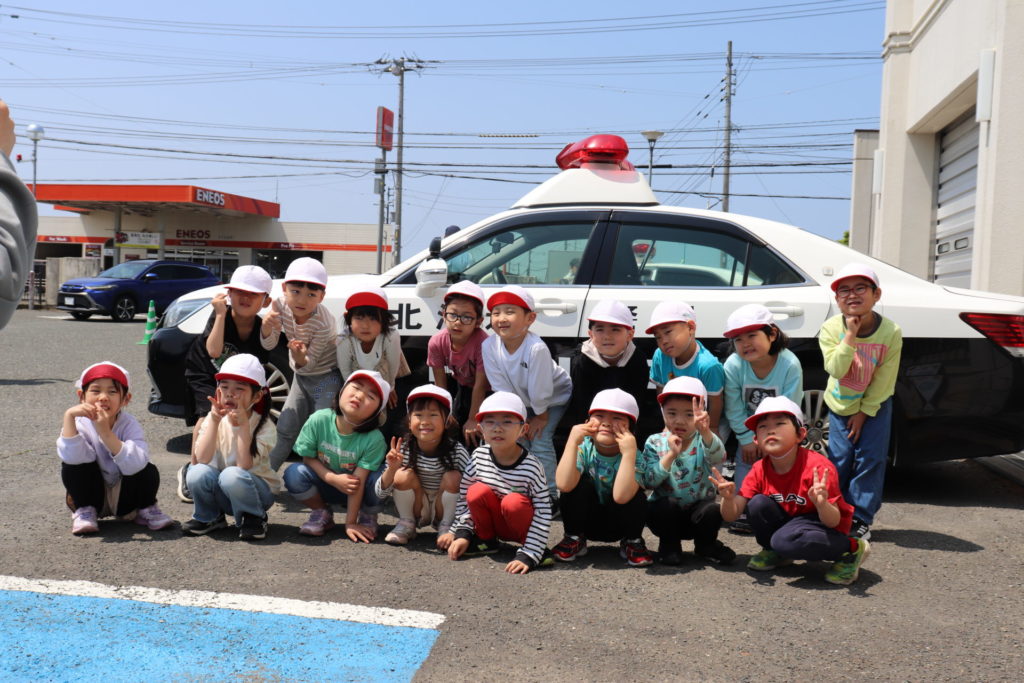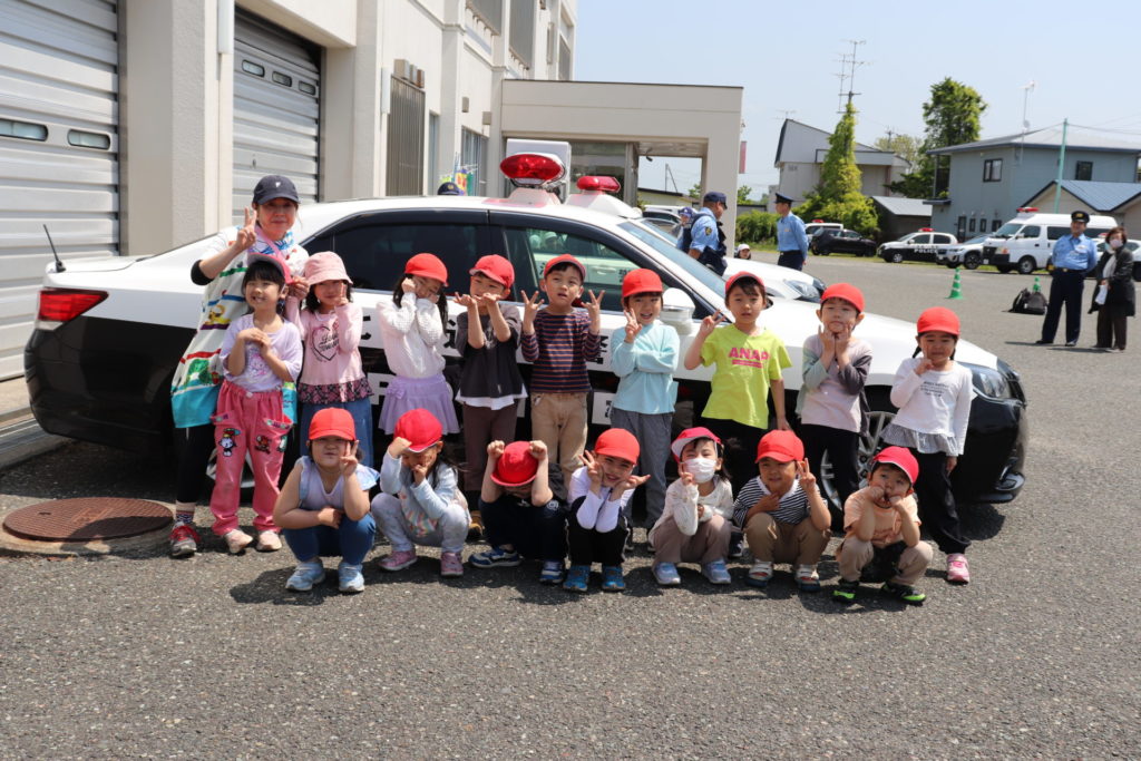 年長組が警察署へ出掛け、それぞれ「大きくなってね」「たくさん咲きますように」の願いを込めながら丁寧に種を植えました。