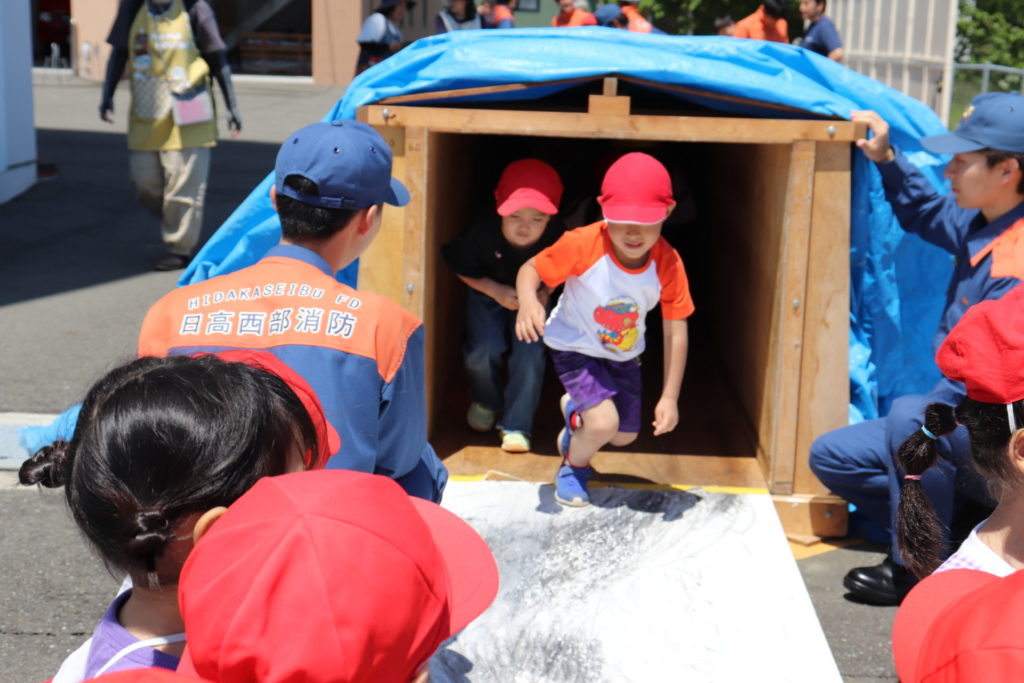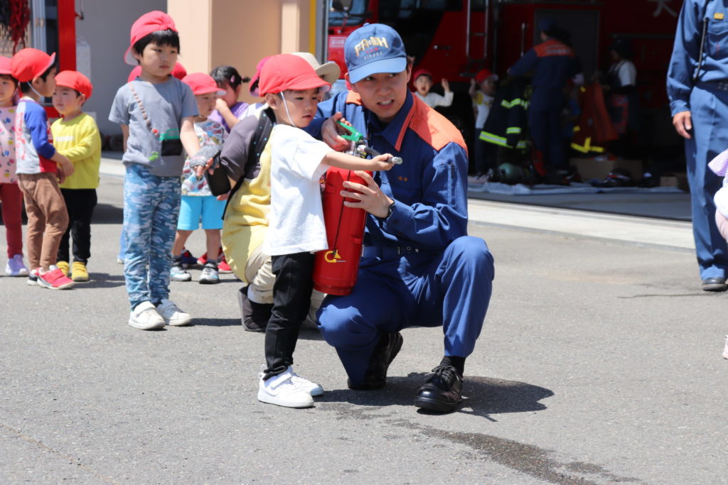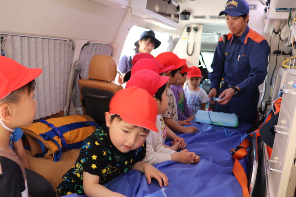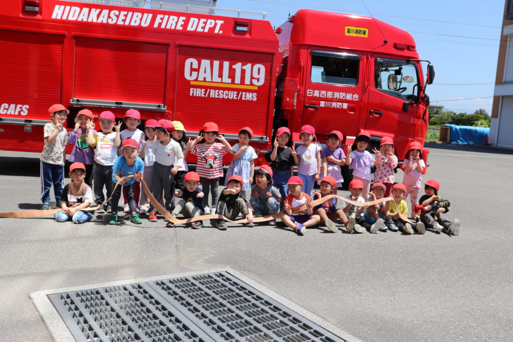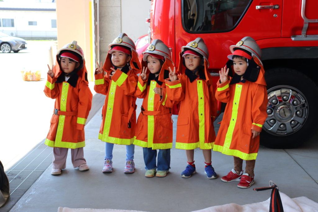 普段はなかなか近くで見る事の出来ない消防車や救急車の乗車体験や、消火訓練の体験、防火衣を着せてもらったりと時間いっぱい消防署の方のお仕事に触れる事ができました!