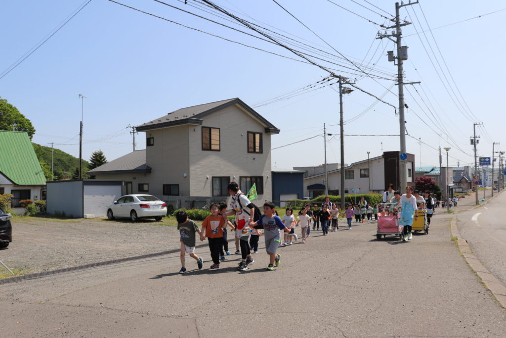 大地震から津波が発生する想定で、毎年幼稚園から高台に避難する訓練をこの時期に実施しています。