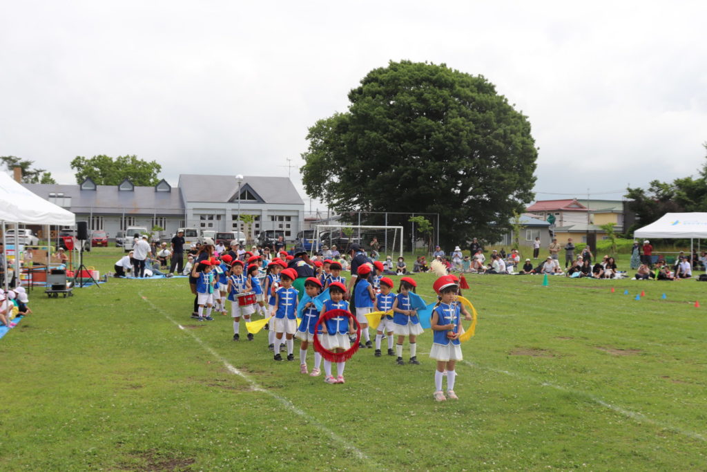 数日前から雨が降り、当日の天候にも不安がありました。各クラスには、子ども達が作った「晴れますように」の願いを込めたてるてる坊主が飾られ、迎えた本番。快晴ではありませんでしたが無事に予定通りに行うことができました。